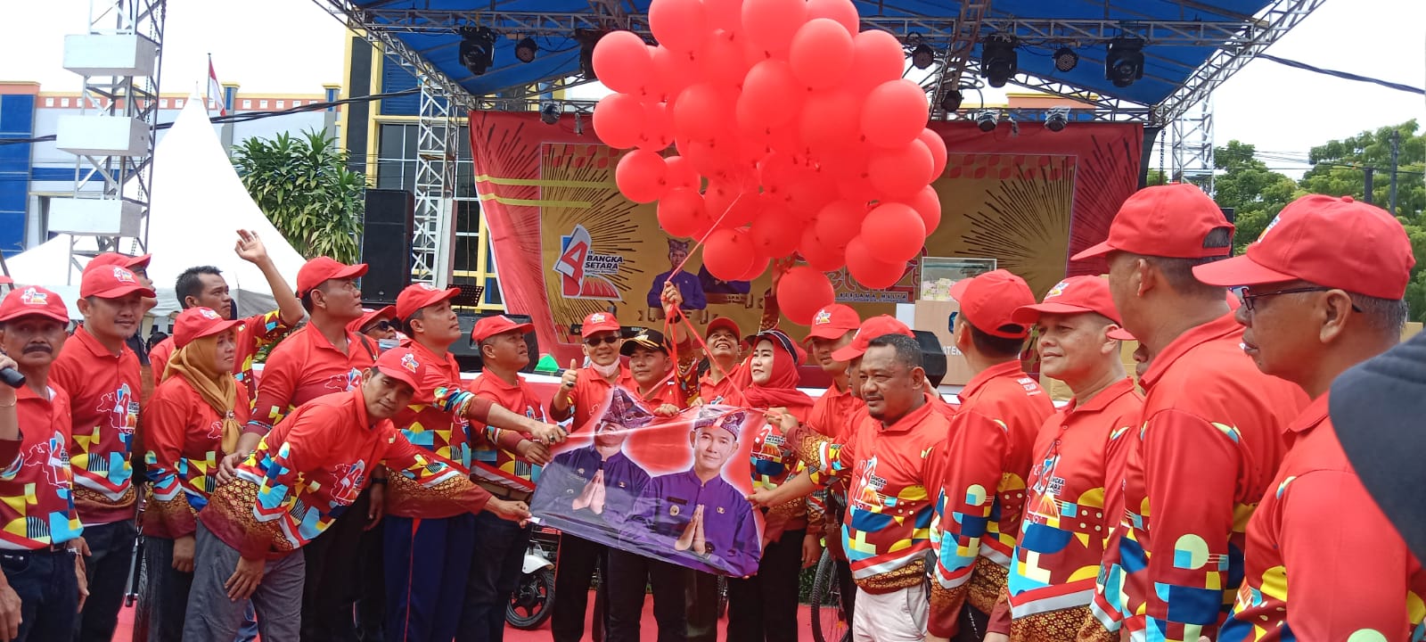 Bangka, Asatu Online – Memperingati 4 tahun kepemimpinan Mulkan-Syabudin (Mulya), Bupati Bangka dan Wakil Bupati Bangka Menggelar kegiatan jalan sehat yang diikuti oleh ribuan masyarakat di Kabupaten Bangka, Sabtu (24/09/2022).