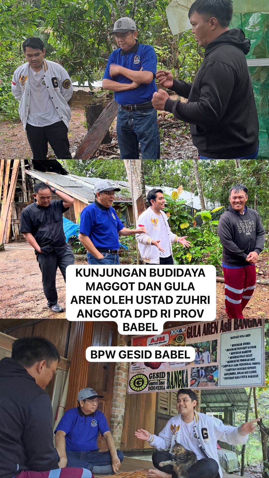 Pangkalpinang, Asatu Online— Anggota Dewan Perwakilan Daerah Republik Indonesia (DPD RI) asal Bangka Belitung, Ustaz Zuhri, melakukan kunjungan ke Badan Pengurus Wilayah (BPW) Generasi Emas Indonesia (GESID) Provinsi Kepulauan Bangka Belitung untuk meninjau kegiatan Program Budidaya Maggot dan Gula Aren.