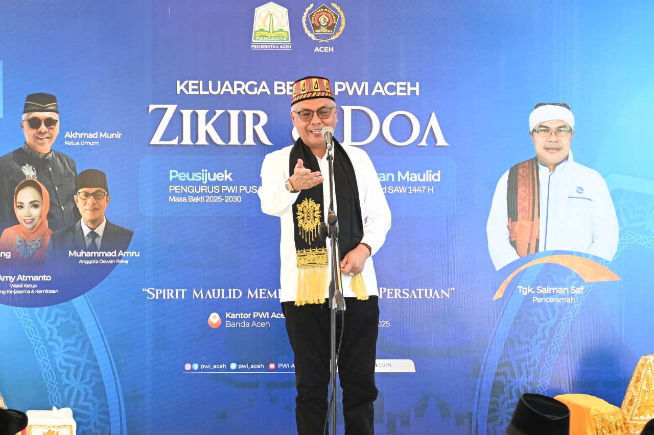 Ketua PWI Pusat, Akhmad Munir, yang baru saja dikukuhkan untuk masa bakti 2025–2030, menyampaikan rasa terima kasih dan haru atas sambutan hangat dari masyarakat dan insan pers Aceh. Ia menilai prosesi peusijuk yang dibalut dalam nuansa religius Maulid menjadi momentum penguat silaturahmi di tubuh PWI.