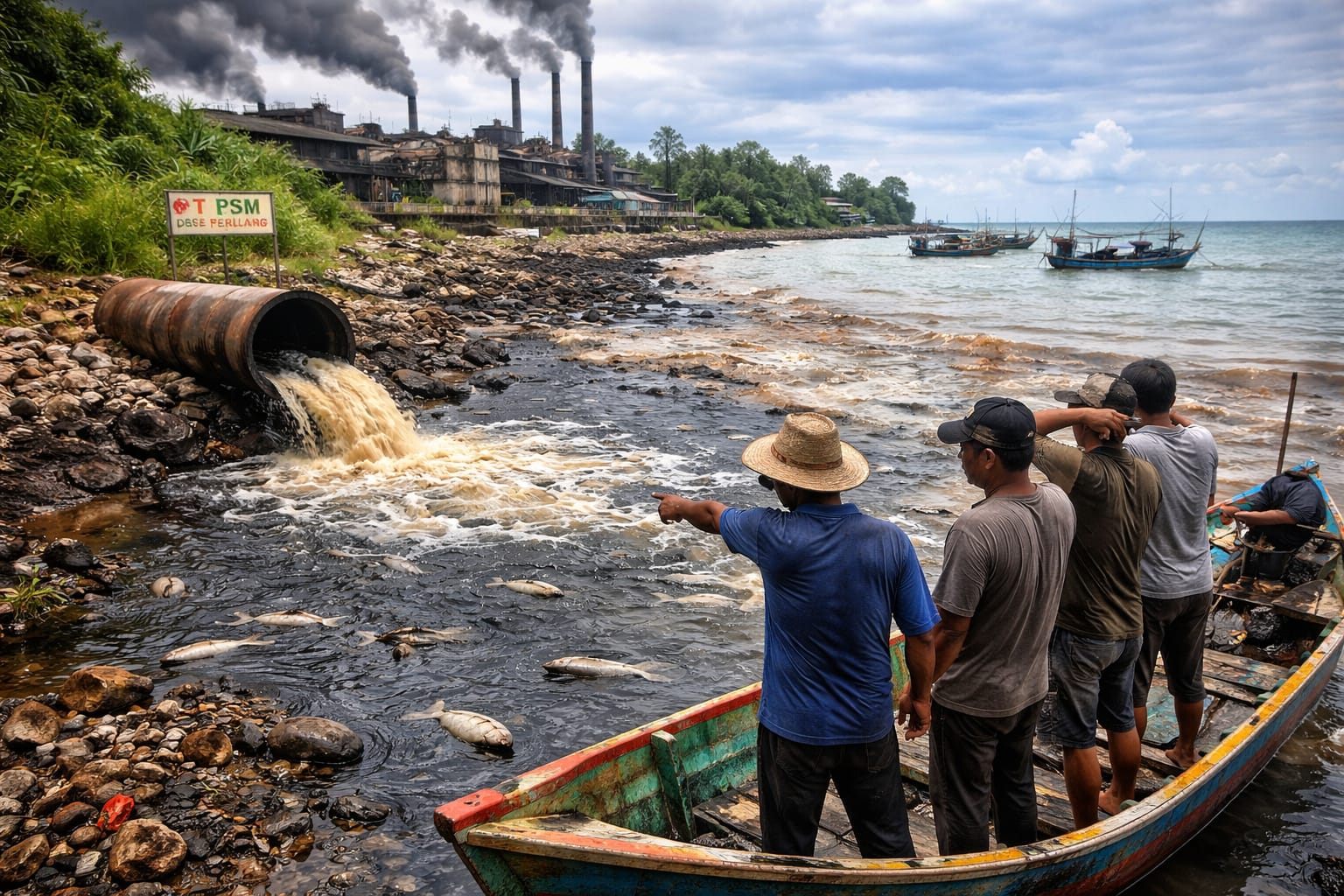 Situasi ini memicu pertanyaan publik: siapa yang sebenarnya bertanggung jawab ketika lingkungan tercemar dan mata pencaharian nelayan terancam?