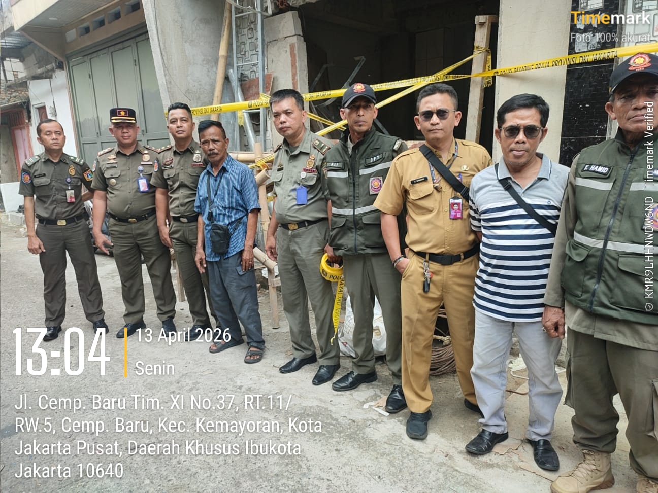 “Kami pasang police line agar tidak ada kegiatan sebelum seluruh izin diverifikasi. Pihak perusahaan dan subkontraktor wajib menunjukkan dokumen seperti PBG dan Sertifikat Laik Fungsi,” ujar petugas Satpol PP Kecamatan Kemayoran, Bronson Sitompul, di lokasi, Senin (13/4/2026).