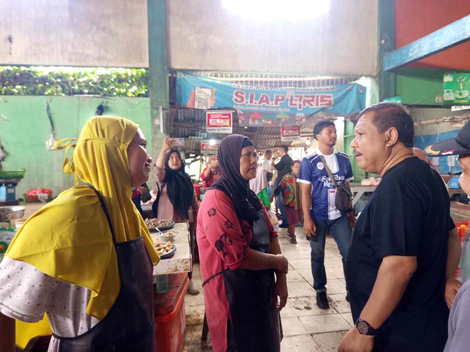 Usai gotong royong, Wali Kota meninjau langsung kondisi Pasar Rumput. Ia berdialog dengan pedagang dan menerima sejumlah keluhan, terutama terkait fasilitas pasar yang mulai rusak, termasuk bagian plafon.