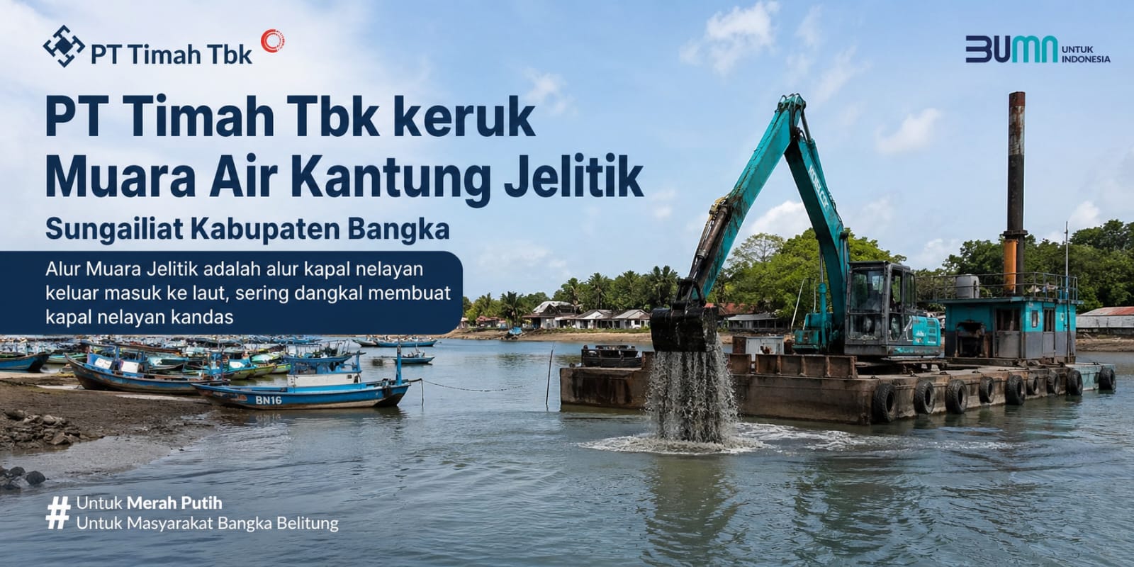 “PT TIMAH menyediakan alat berat, sementara operasional kami lakukan secara gotong royong bersama para penambang. Ini juga bentuk kepedulian terhadap nelayan agar alur muara kembali lancar,” ujar Hasanudin, Minggu (26/4/2026).
